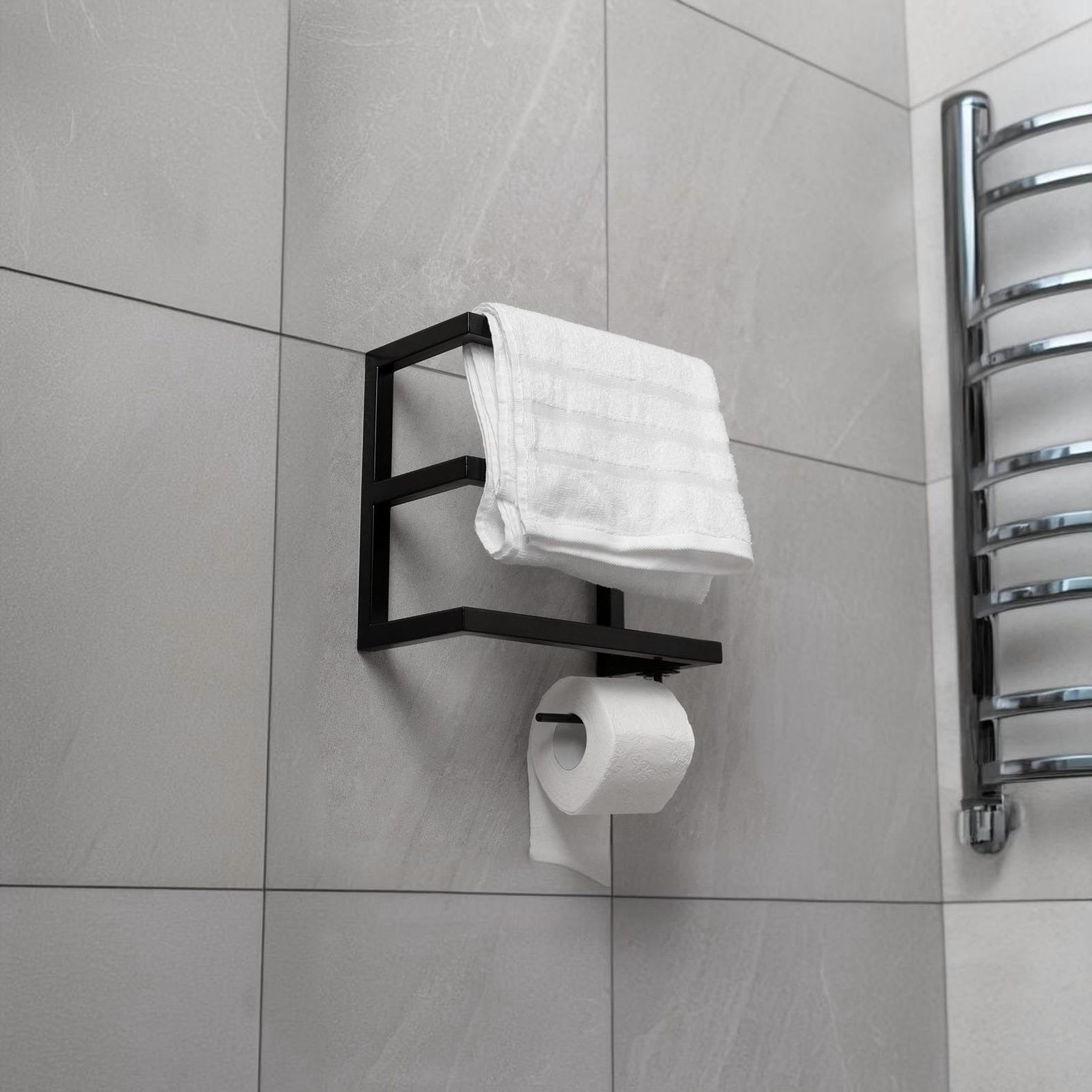 Metal Towel and Toilet Paper Holder - Modern & Versatile Bathroom Storage Solution
