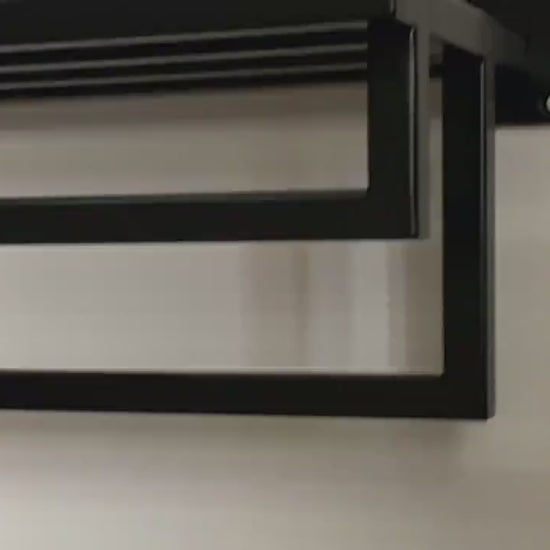 The stylish design of the shelf makes the details more expressive. The profile pipe shelf is complemented by two towel holders. This design makes the shelf as convenient and roomy as possible. It is attached to the wall with dowels, which are included.