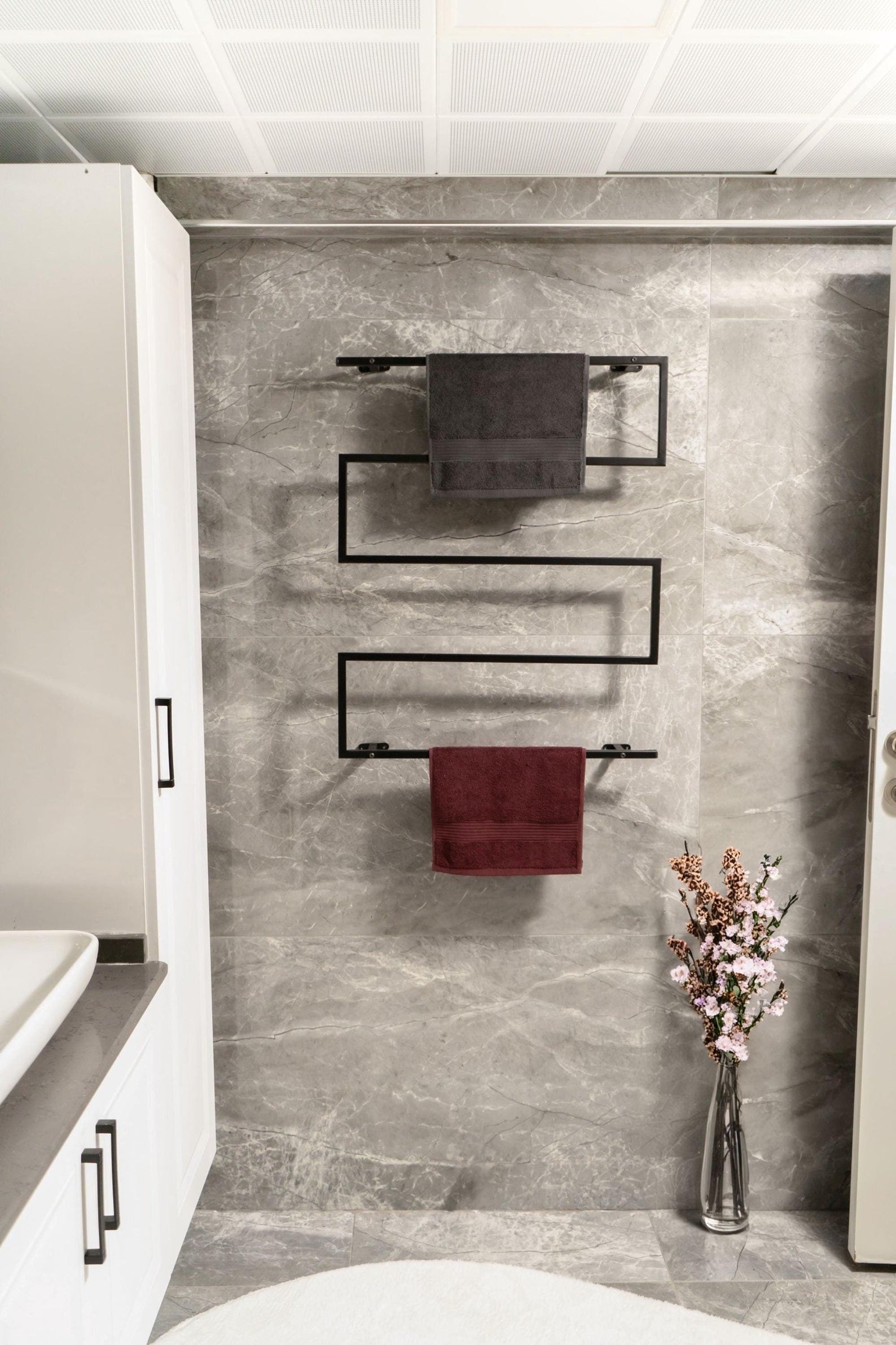Attracting attention with its elegant and modern design, my wall-mounted metal bath towel holder will add elegance to the decoration of your bathroom. This functional and aesthetic towel rack allows you to hang your towels in an organized way as well as saving space in your bathroom. Made of high quality metal product is long-lasting and durable.