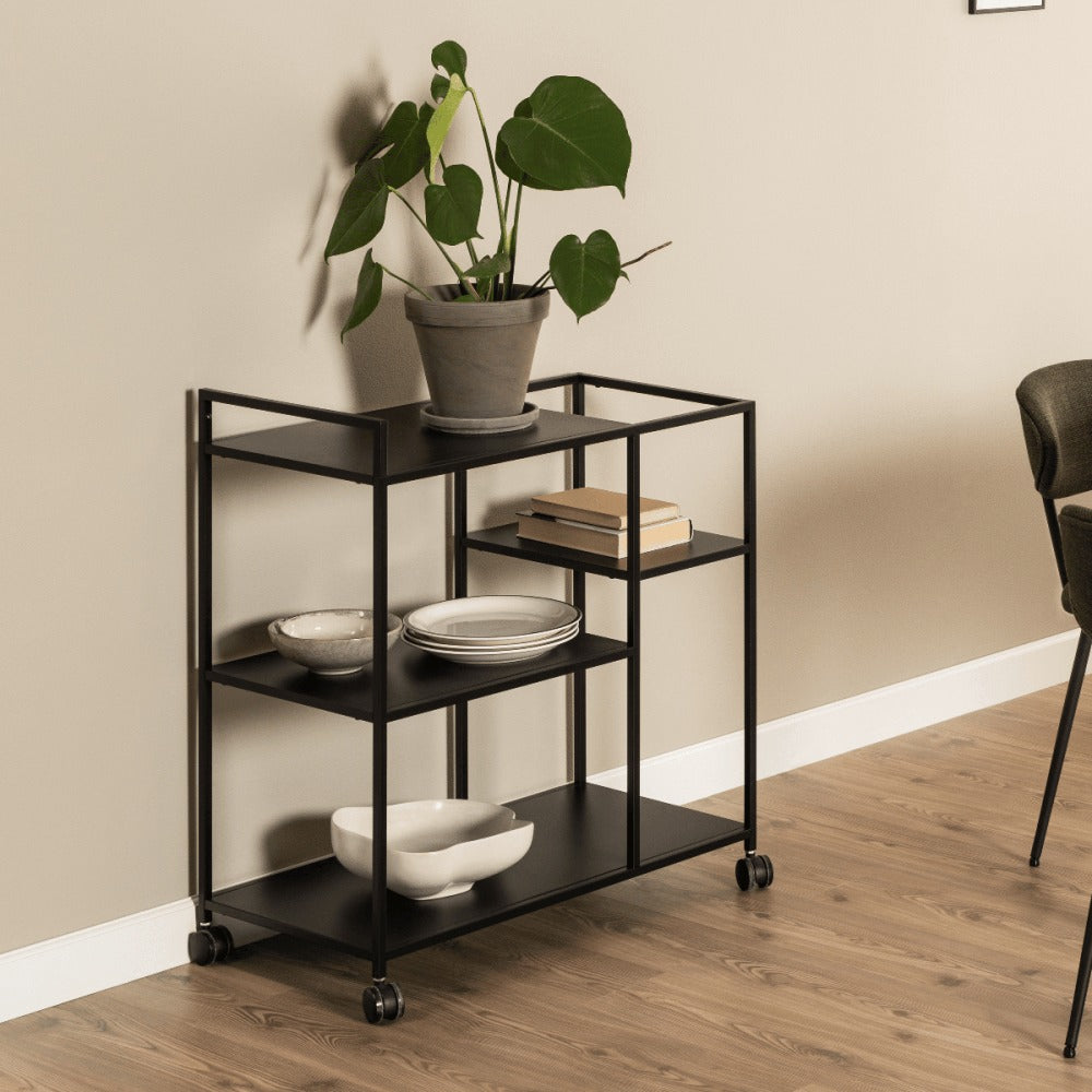 Introducing the Newark Serving Trolley, a fantastic addition to your home that effortlessly exudes an industrial vibe. Crafted entirely from sleek metal, this kitchen trolley showcases a powder coated finish, infusing a touch of modernity into any room. Its slender and compact design ensures a seamless fit in any corner. Not only does this trolley offer a cool and stylish upgrade to your space, but it also provides ample storage options that are incredibly versatile.