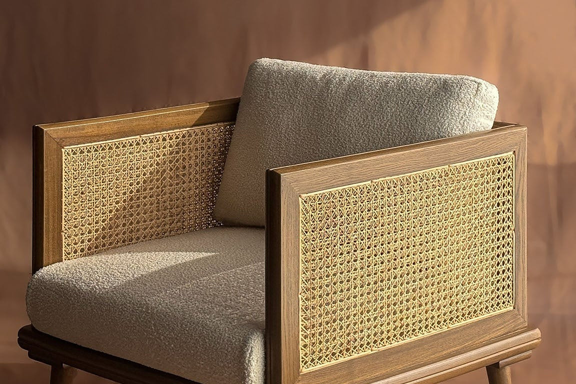 Rattan Armchair – Handcrafted Solid Wood & Cane Lounge Chair – Modern Minimalist Accent Seating