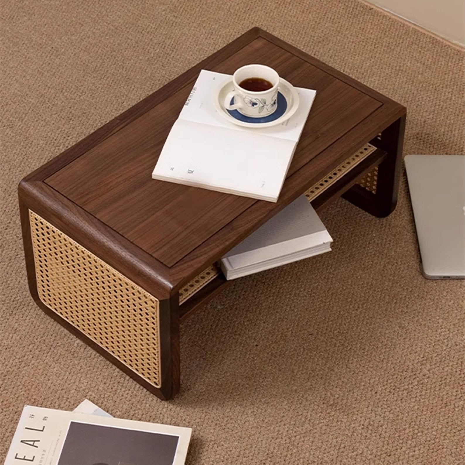 Handwoven Rattan Surface β Natural vine weave adds earthy charm
