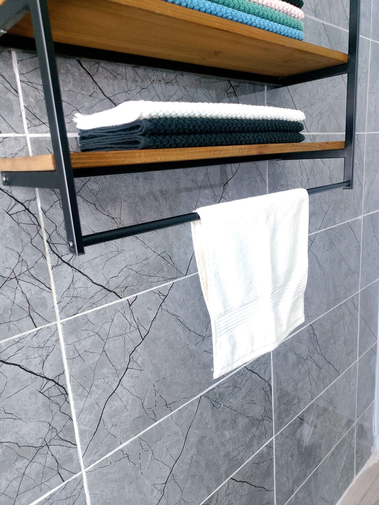 Add both style and function to your bathroom with our handcrafted wall-mounted towel rack with shelves. Designed with a sleek metal frame and natural wooden shelves, this piece effortlessly blends rustic charm with modern industrial aesthetics. Whether you're upgrading your bathroom decor or simply need a smarter storage solution, this towel rack is the perfect choice for any home.