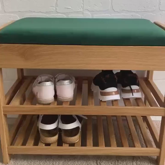 Keep your entryway tidy and stylish with this handcrafted wooden shoe storage bench. Designed with functionality in mind, it features two open shelves for organizing your everyday footwear and a lift-up cushioned seat that hides a convenient storage compartment β perfect for small items like shoe care products, keys, or seasonal accessories. This rustic entryway shoe cabinet fits beautifully in small spaces and adds a warm, natural touch to any interior. Whether youβre looking for a multi-functional entryway bench with storage, this piece is a practical and elegant solution.